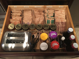 Saving clients time, space and steps were her major goal. Since it was impossible to find suitable drawer organizers on the market to meet individual needs, she designed her own custom organizing system. Customers found there was no limit to drawer size, height, or size of compartments, as when using pre-formed inserts. With the ease of installation, the “do-it-yourselfer” could easily create just the sizes they required in any drawer.